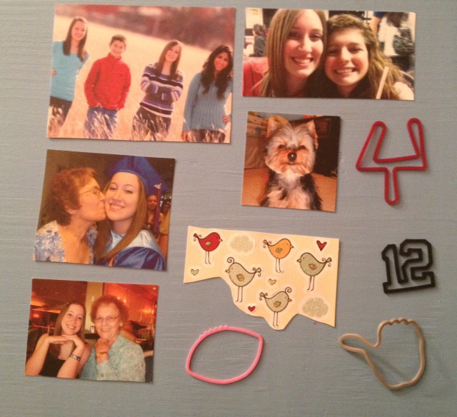 - Five photographs of my family. I was sure to write names and places on the backs of the pictures so that Lavin would understand what was going on.